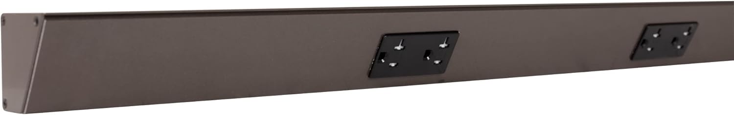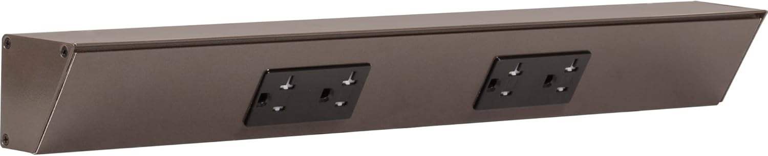 The patented TR Angle Power Strip mounts under cabinets and countertops, and is an ideal alternative to standard outlets that are cut into tile, glass, wood panels, metal and other solid surfaces. The fixture is easily hidden, while the angle offers easy access to receptacles. Use under kitchen cabinets and countertops, vertically along the sides of a bathroom mirror, on the top of an office desk, in the shop, craft room and home entertainment center. Custom options include length, additional receptacles, data devices, and switches for lights and garbage disposal. All standard receptacles are 20 amp duplex tamper resistant. Meets 2008 NEC. Mounting hardware included. Requires installation by licensed electrician.