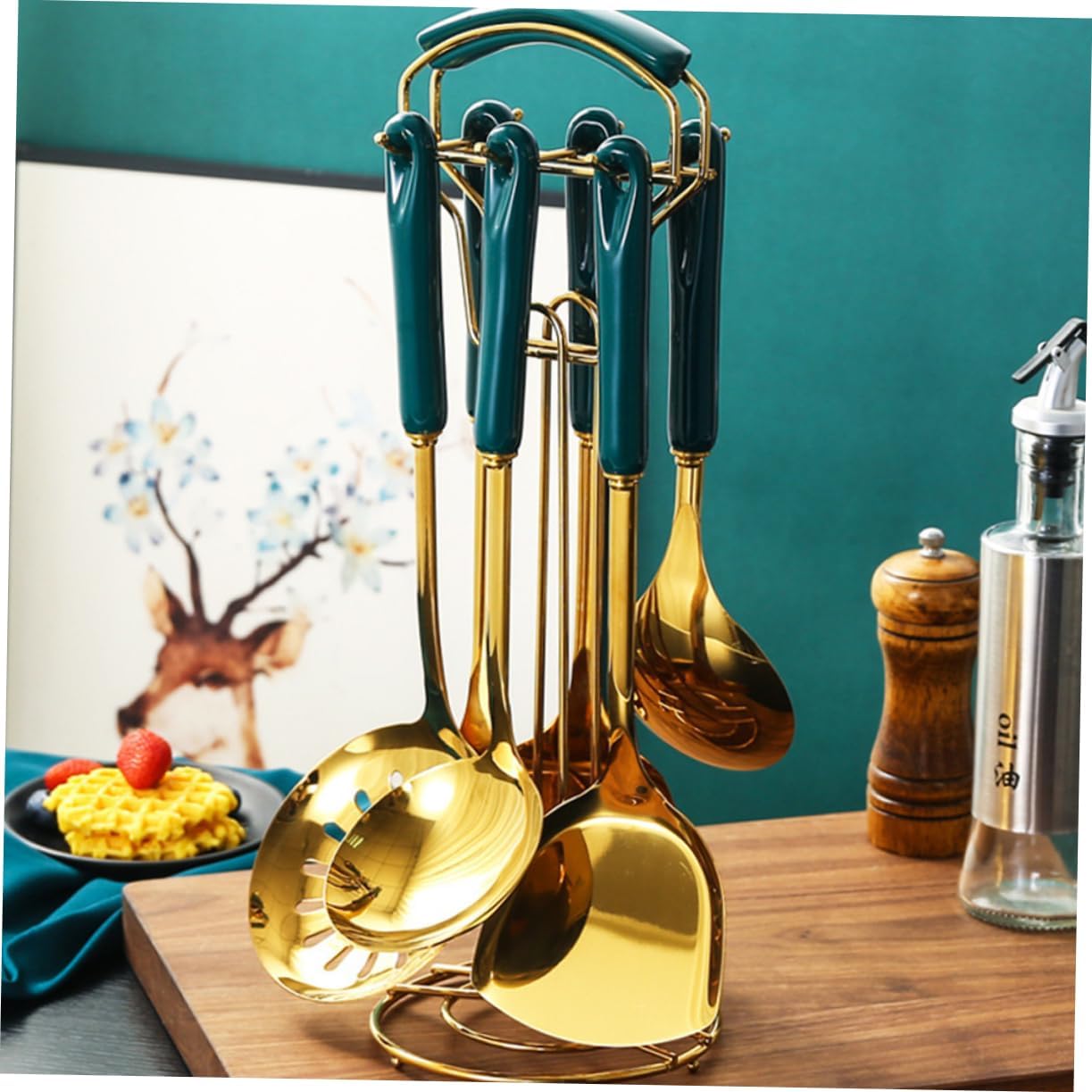 Package Include 1 1 x Colander 1 x Soup ladle 1 x Noodle strainer 1 x Spatula 1 x Rice scoop 1 x Pancake turner Characteristics - Rice Scoop Size: Approx. 26.00x7.50cm; 10.24x2.96in spatula - Soup Ladle Size: Approx. 31.00x9.00cm; 12.20x3.54in kitchen cooking utensils - Pancake Turner Size: Approx. 34.50x7.50cm; 13.58x2.96in cooking utensil set - Colander Size: Approx. 34.00x11.50cm; 13.39x4.53in cook - Color: Green pasta - Rack Size: Approx. 39.00X13.00X13.00cm; 15.33X5.11X5.11in non-stick utensils - Material: Stainless steel, ceramic kitchen utensils set - Noodle Strainer Size: Approx. 30.00x7.50cm; 11.81x2.96in kitchen items - Spatula Size: Approx. 33.50x33.50cm; 13.19x13.19in metal colander - They are non-stick, stain resistant, and heat-resistant, so they are easy to clean and healthy for your life cooking utensils set. - Your stylish and colorful new kitchen utensils will be such a pleasure to use, so you'll soon be creating heavenly dishes for friends and family utensil. - This utensil set is made of food grade materials, and safe juego. - They will never cut your hands and mouth because of smooth surface heat-resistant cooking tools. - Simple and elegant design makes them appropriate for dinner table and kitchen turner spatula.Goods Informationkitchen utensils Different dishes cooking needs different tools, the spoons can help you to make delicious dishes well.slotted spatula The spoons or spatulas are .stainless flatware This utensil set can be used for many purposes: stir, mix, strain, and/or whisk.stainless cookware They are always the right tools for any kitchen task