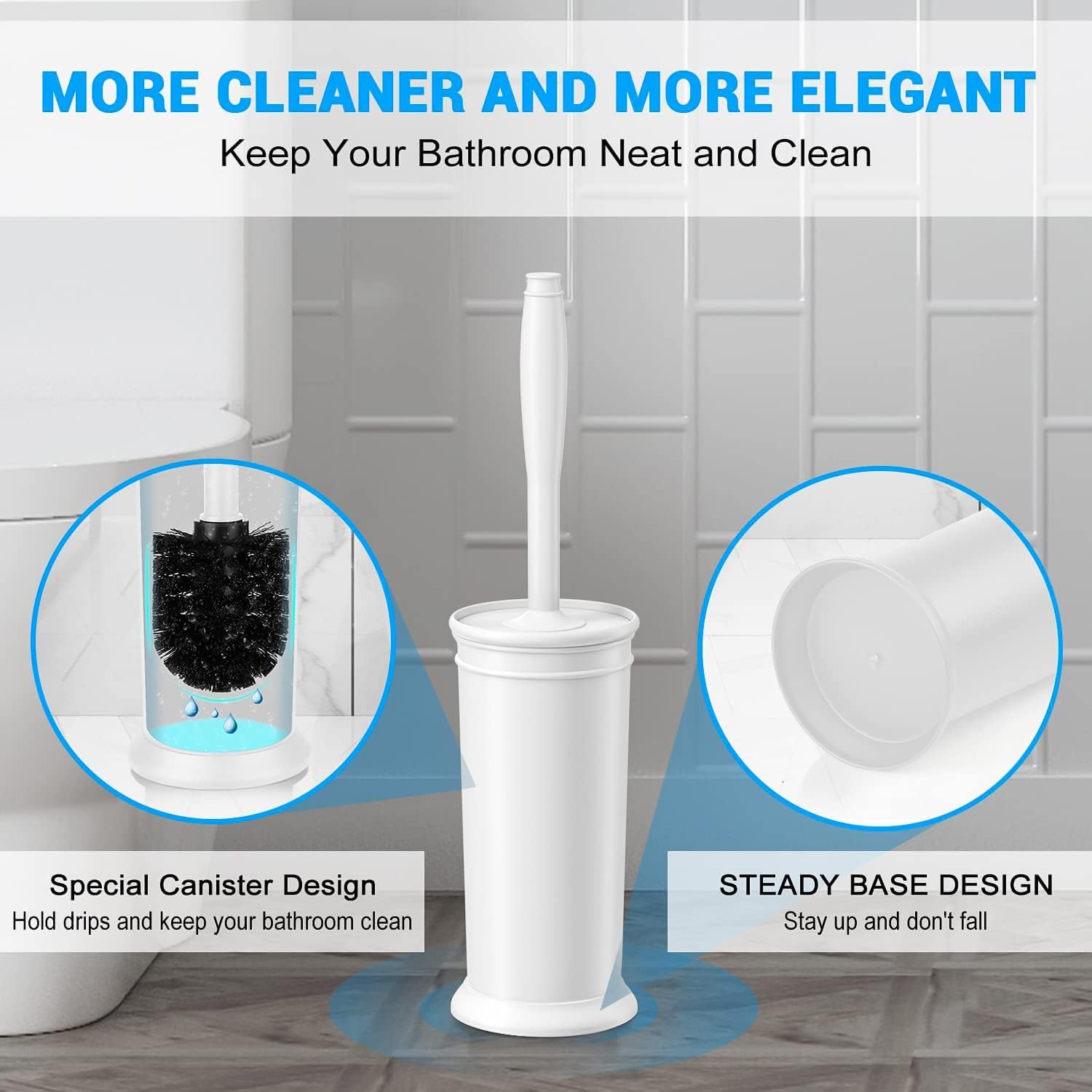 UPTRONIC Toilet Brush, 3 Pack Toilet Bowl Brush with Extra Long Handle Durable Bristles Toilet Scrubber and Covered Holder for Toilet Brush Set for Bathroom Cleaning (Black and White)