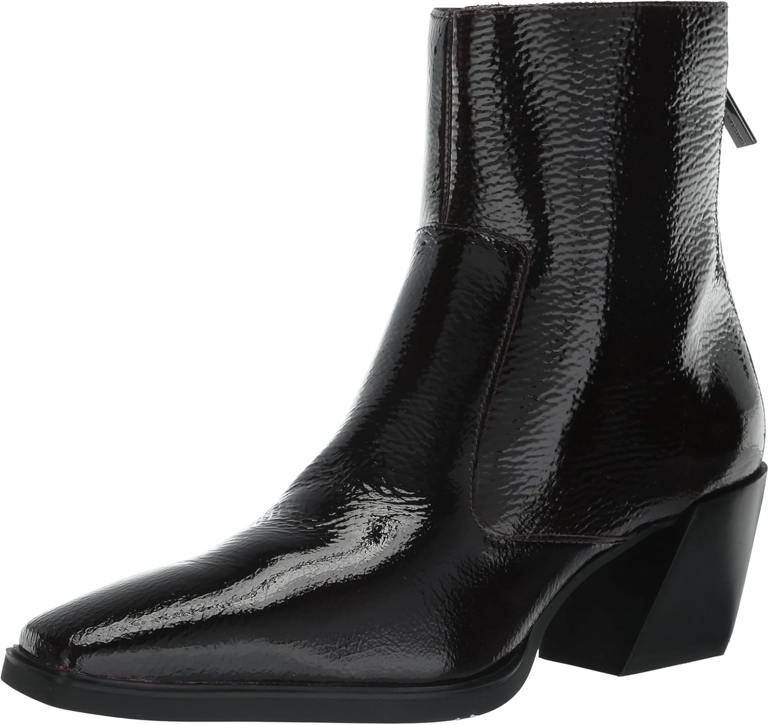 The Viltana bootie has a sleek silhouette with a square toe. She sits atop a cuban heel and has a back zip for easy entry. Available in suede, leather, or tumbled patent, this boot works with denim or dresses.