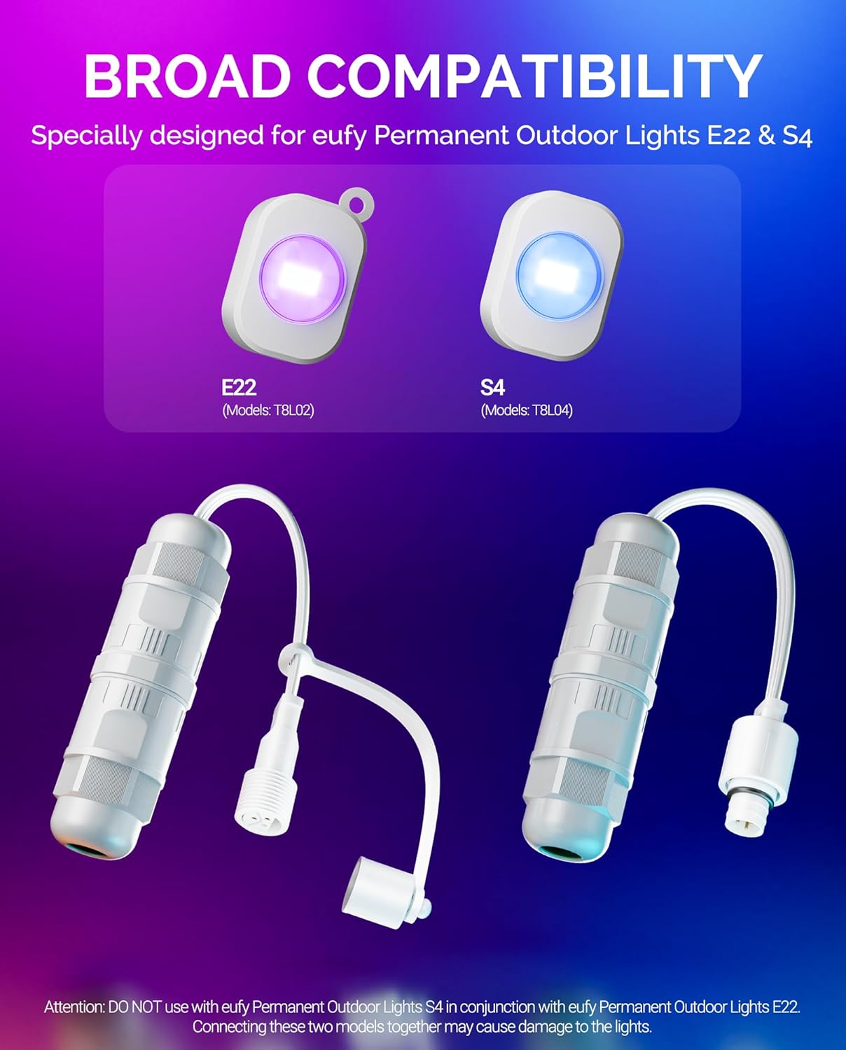 Wire Connector + Y-Splitter for eufy Permanent Outdoor Lights E22 T8L02 & S4 T8L04, Splice Connector Help to Connect with eufy String Lights and Radar Motion Sensor, IP65 Waterproof, White
