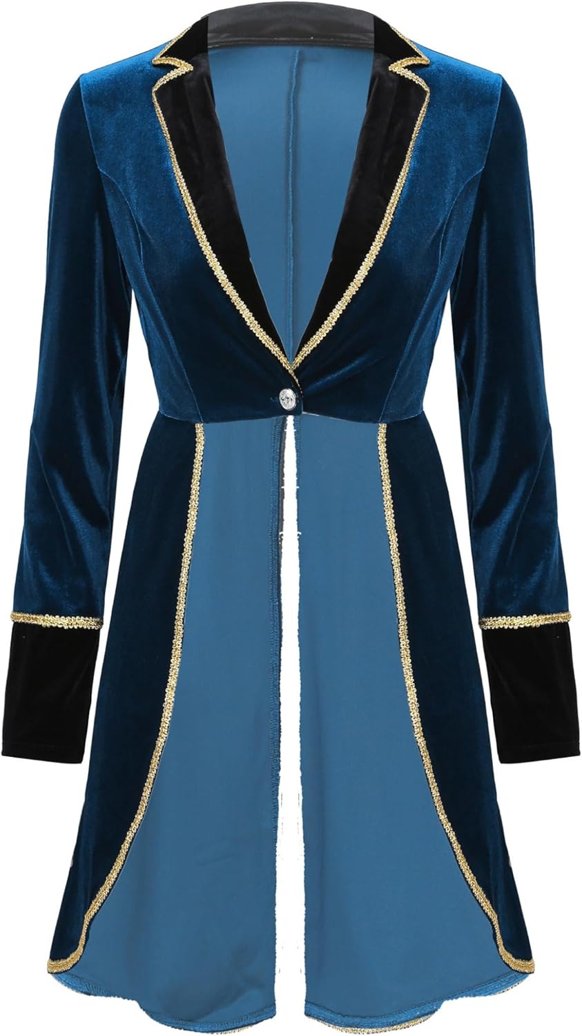 Set Include: 1 x Swallow-Tailed Coat Condition: New with tag Material: 95% Velvet, 5% Metal Tag No.---|---Recommended Size---|-----Shoulder-----|------Chest------|------Waist-----|----Back Length---|---Sleeve Length ---S------|-----------S----------|----14"/35.5cm----|-----33"/84cm----|---27.5"/70cm---|----33"/84.5cm----|------22"/57cm-- ---M------|-----------M----------|---14.5"/36.5cm---|-----35"/89cm----|---29.5"/75cm---|----34"/86.5cm----|-----22.5"/58cm- ---L------|-----------L----------|-----15"/38cm-----|-----37"/94cm----|---31.5"/80cm---|---34.5"/88.5cm---|------23"/59cm-- ---XL-----|----------XL----------|----15.5"/39cm----|-----39"/99cm----|---33.5"/85cm---|---35.5"/90.5cm---|-----23.5"/60cm- --XXL-----|----------XXL---------|---15.5"/40.5cm---|---40.5"/104cm---|----35"/90cm----|----36"/92.5cm----|------24"/61cm-- --3XL-----|----------3XL---------|---16.5"/41.5cm---|---42.5"/109cm---|----37"/95cm----|----37"/94.5cm----|------24"/62cm--
