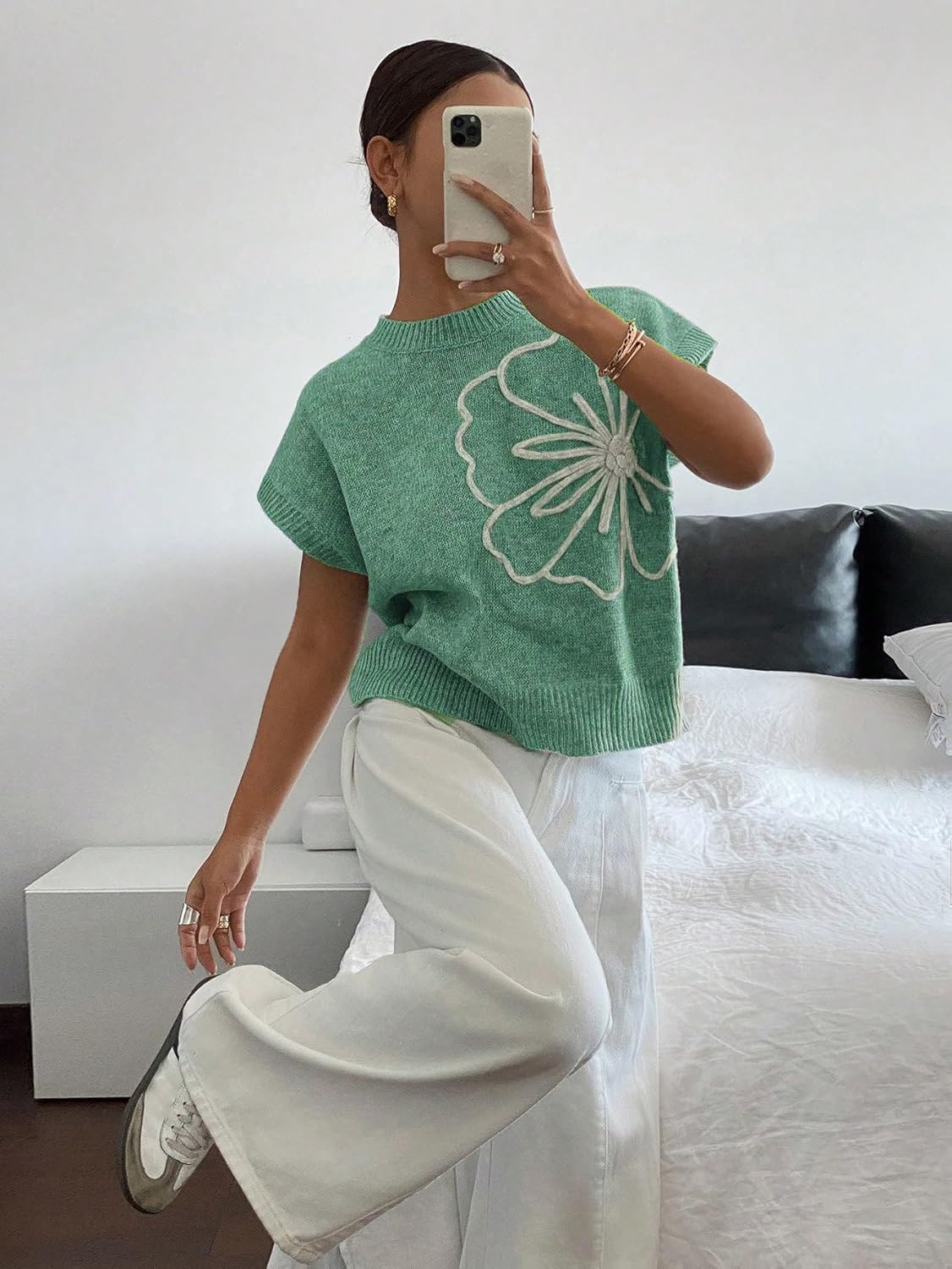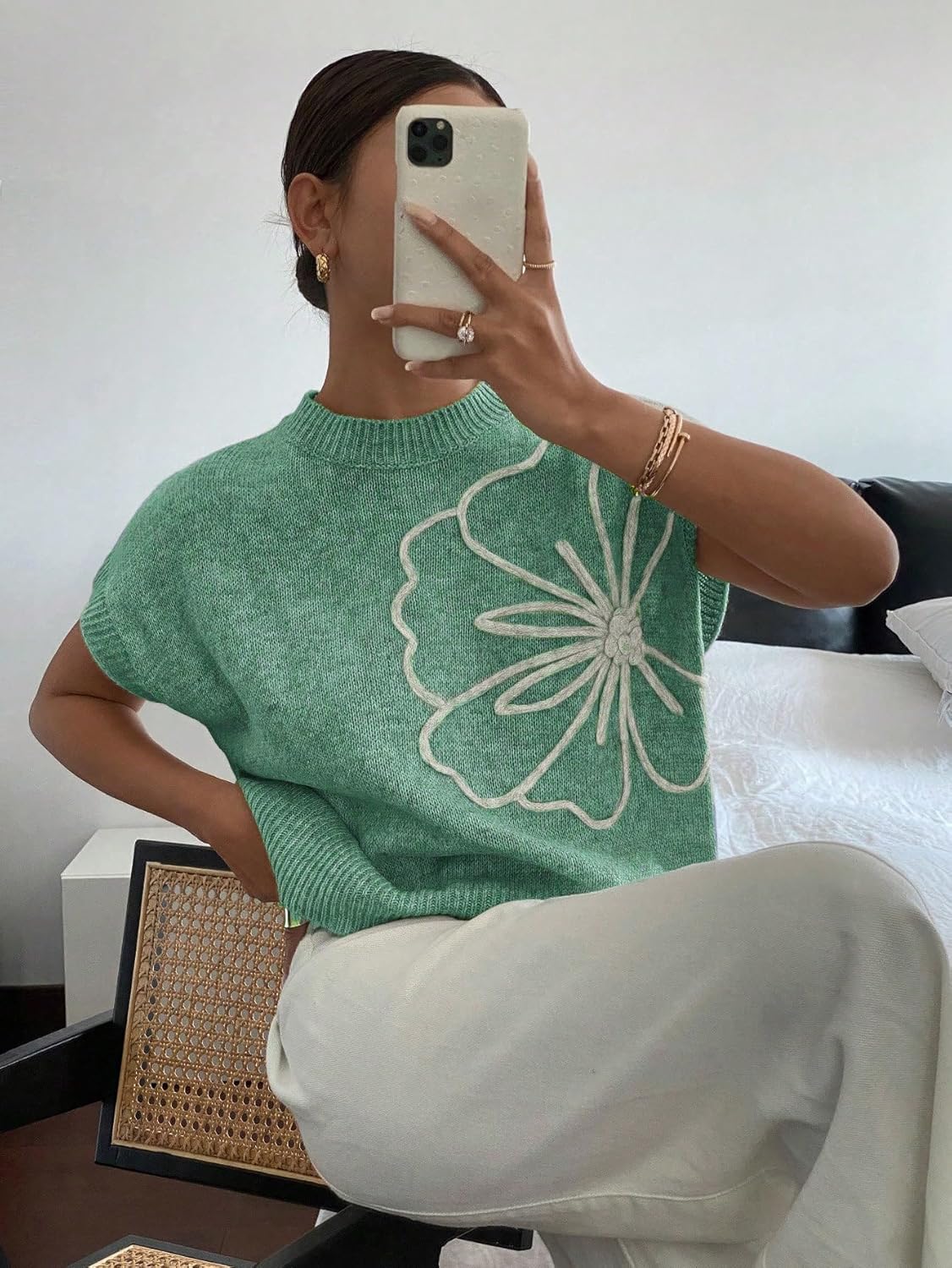 Versatile Wardrobe Essential: Whether paired with trousers or skirts, this cap sleeve knit sweater top is a chic version of pull over sweaters womens, making it a unique alternative to crewneck sweater women and a stylish pick for those who love sweater tops for womenCozy Fall Style: Perfect for casual mornings with coffee in hand, this fall sweater doubles as a chic womens fall sweater while also being a versatile sweater vest women, lightweight for layering and stylish for any outing, making it a must-have sweater for women in 2025Trendy Knitted Look: Designed with a floral pattern for elegance, this knit sweater for women is a fashionable option in the season of fall sweaters for women 2025, ideal as cap sleeve tops for women for layering or worn alone, offering breathable comfort as womens lightweight sweatersSeasonal Outfit Choice: Elevate everyday outfits with this green cozy sweaters for women option, wearable as womens lightweight sweaters, doubling as trendy crew neck sweater for women and designed for layering with jackets, making it one of the most sweaters for women trendyStylish Modern Fit: Capturing elegance with simplicity, this green sweater women pairs well with neutral pants, doubling as a versatile womens sweaters fall, suitable as sweater women for outings, or chosen as cute sweaters for women in transitional seasons