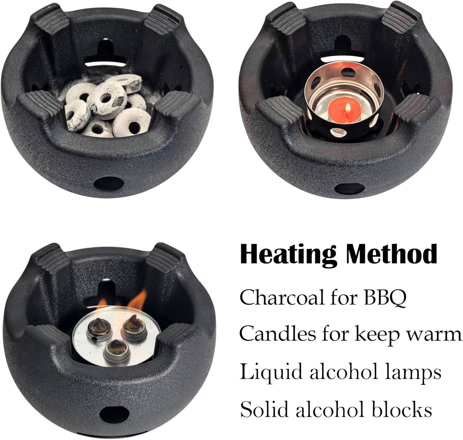 | Included Components | 304 Stainless Steel Mesh, Aluminium Alloy Charcoal Grills, Cast Iron Trivet |
