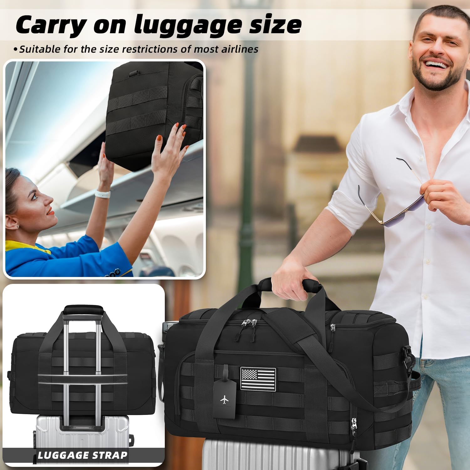 3-in-1 Versatile Duffle Backpack – Gym, Travel & Tactical Ready Transform this rugged bag into a duffel, shoulder bag, or backpack for any adventure. Customize storage with removable dividers and a vertical shoe compartment. Built tough with 900D water-resistant nylon, reinforced stitching, and heavy-duty zippers. Airline-friendly (21”x11.5”x9”) with a luggage sleeve & padded straps. Expandable via MOLLE webbing for extra gear. Perfect for gym, travel, and tactical missions!